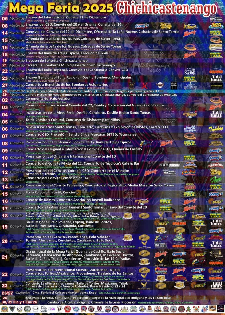El calendario se extiende por más de 60 días, abarcando noviembre, diciembre y parte de enero 2026, e incluye eventos que fusionan espiritualidad, cultura maya, tradición y fiesta popular.