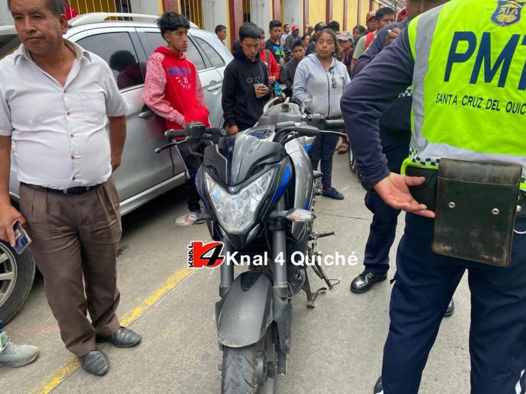 Un accidente de tránsito ocurrido frente a Gobernación Departamental, en el parque central de Santa Cruz del Quiché, dejó como resultado a dos personas heridas.