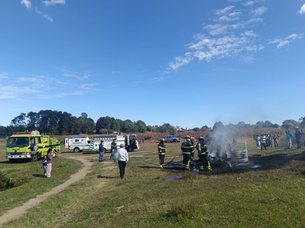 Incendio consume vehículo en aldea Lemoa, Santa Cruz del Quiché