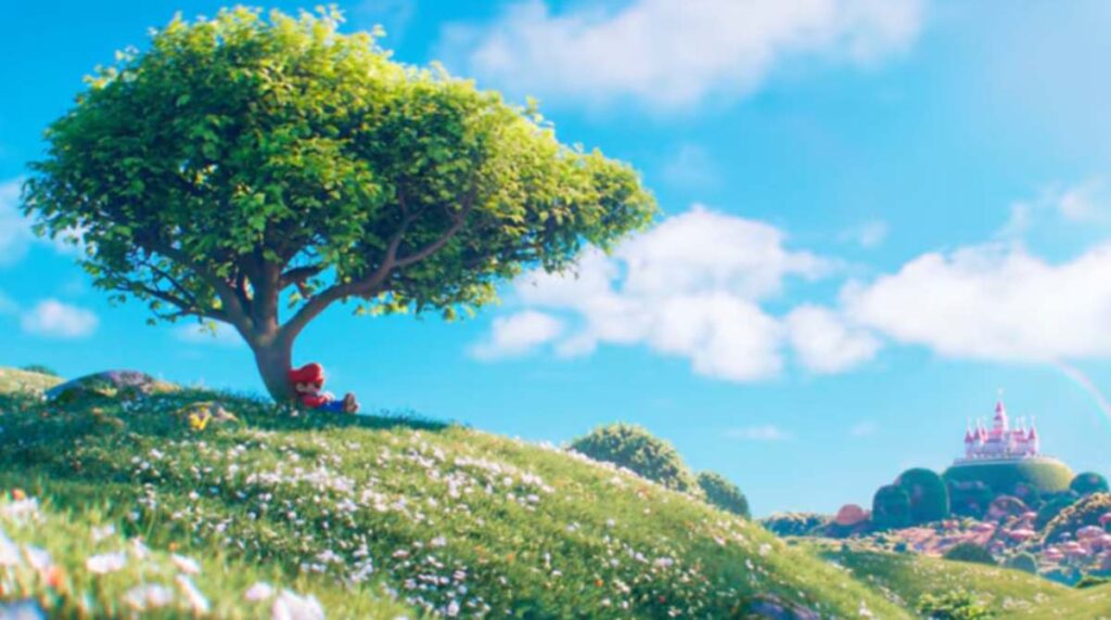 En el tráiler se observa a Mario descansando bajo un árbol en el Reino Champiñón, hasta que la escena se eleva hacia el espacio, anticipando una aventura intergaláctica en compañía de personajes clásicos como Peach, Luigi, Bowser y Toad.